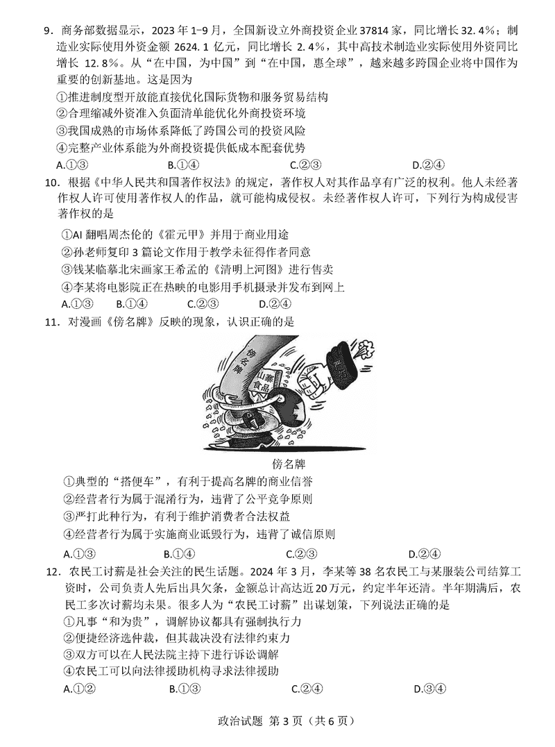 导读浙江北斗星盟2024年高三上学期12月月考政治试题质量较高,题型多样,将作为考察考生对相应考点的掌握程度,考后将及时整理试题及答案解析相关信息,以供考生学习交流!政治试题及答案解析