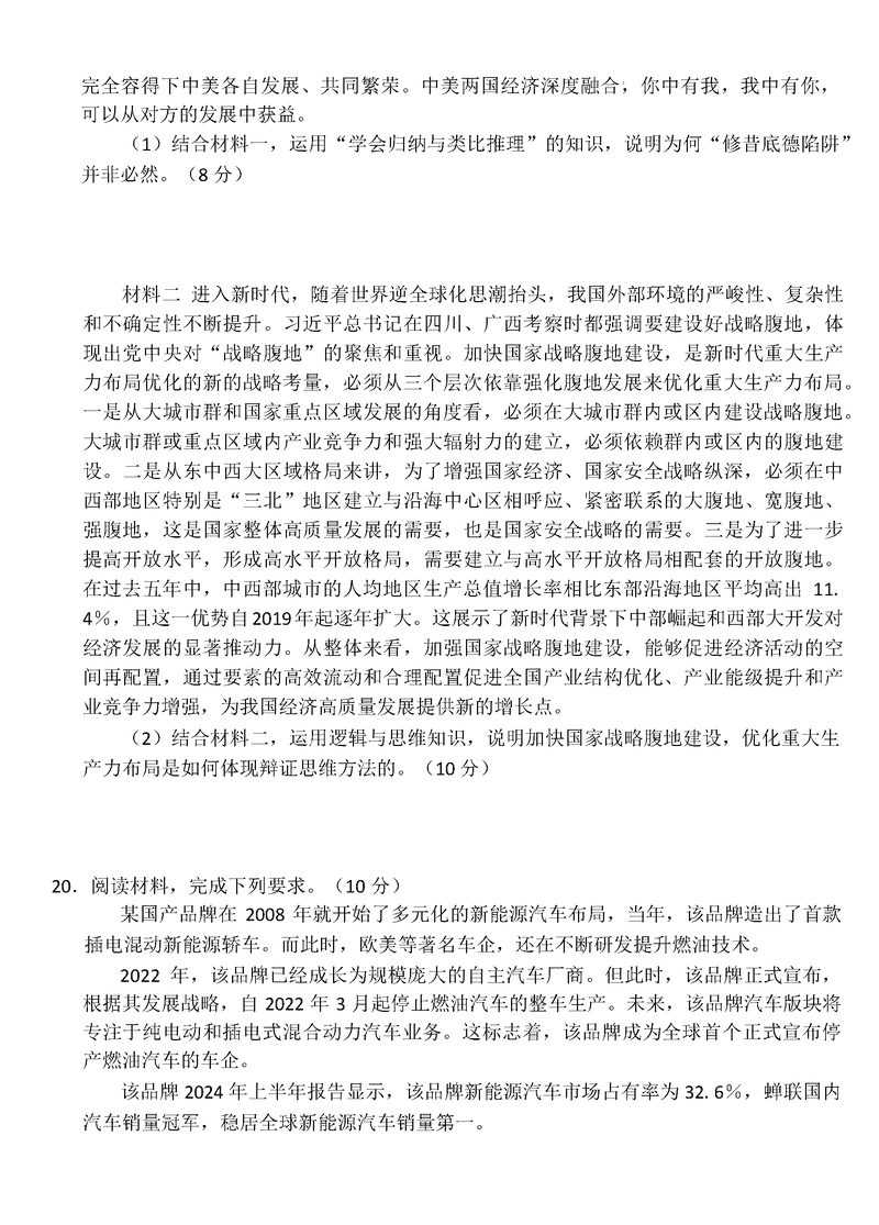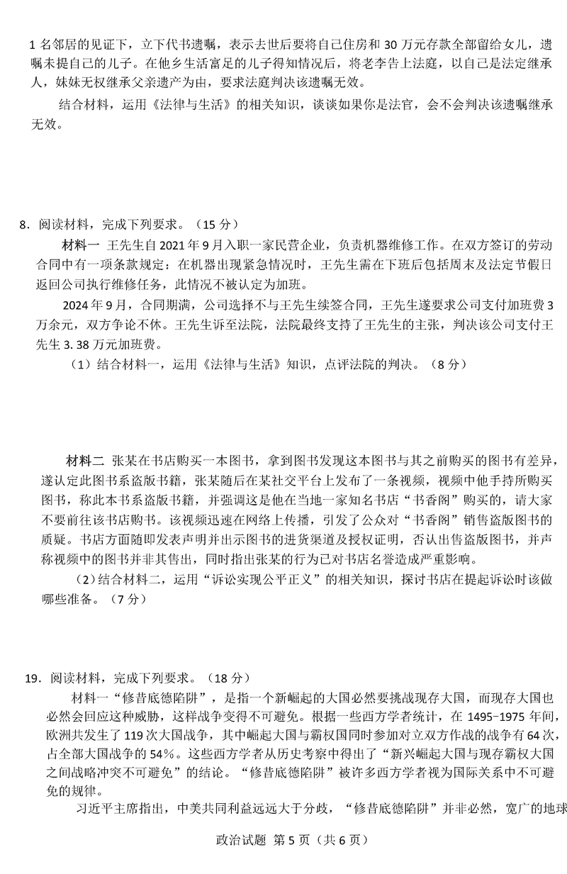 2025年湖北省新八校协作体高三5月联考政治试卷及参考答案