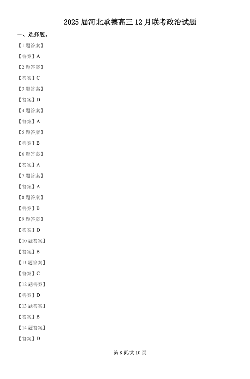 2025届石家庄市高三质检(二)政治试题质量较高,题型多样,将作为考察考生对相应考点的掌握程度,考后将及时整理试题及答案...
