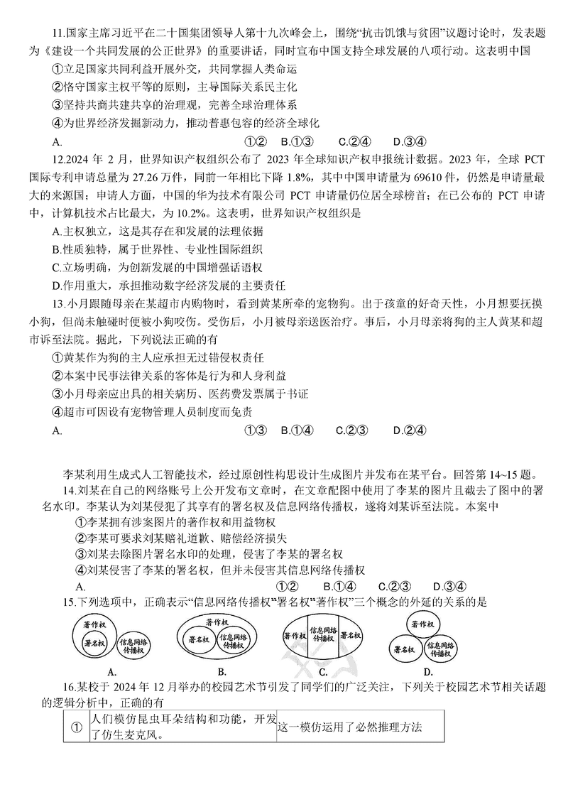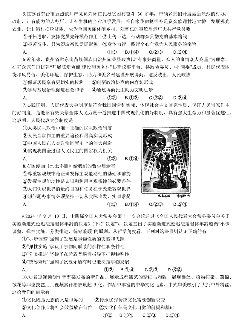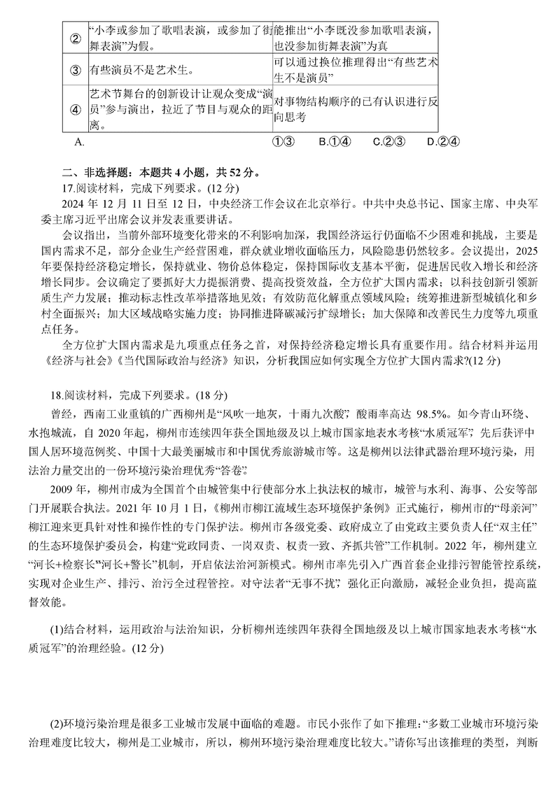 导读广西柳州市2025届高三第二次模拟考政治试题质量较高,题型多样,将作为考察考生对相应考点的掌握程度,考后将及时整理试题及答案解析相关信息,以供考生学习交流!政治试题及答案解析