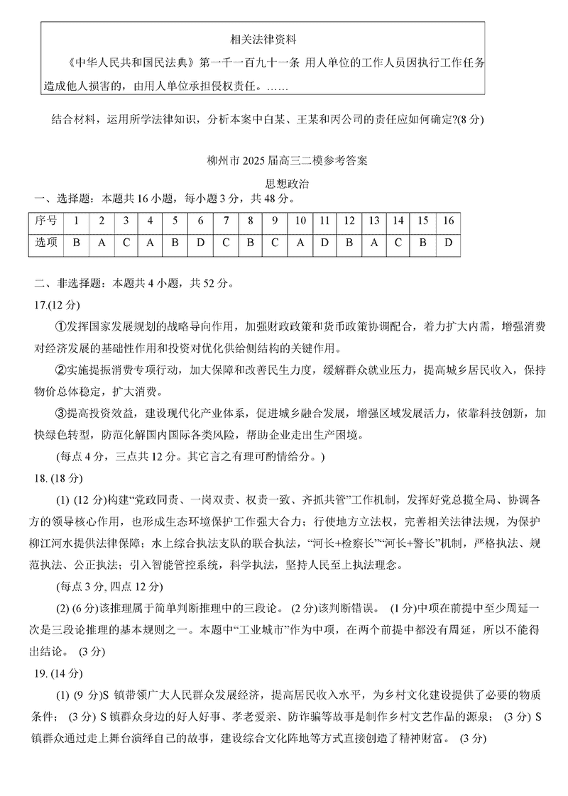 广西柳州市2025届高三第二次模拟考政治试题质量较高,题型多样,将作为考察考生对相应考点的掌握程度,考后将及时整理试题及答案解析相关信息,以供考生学习交流!