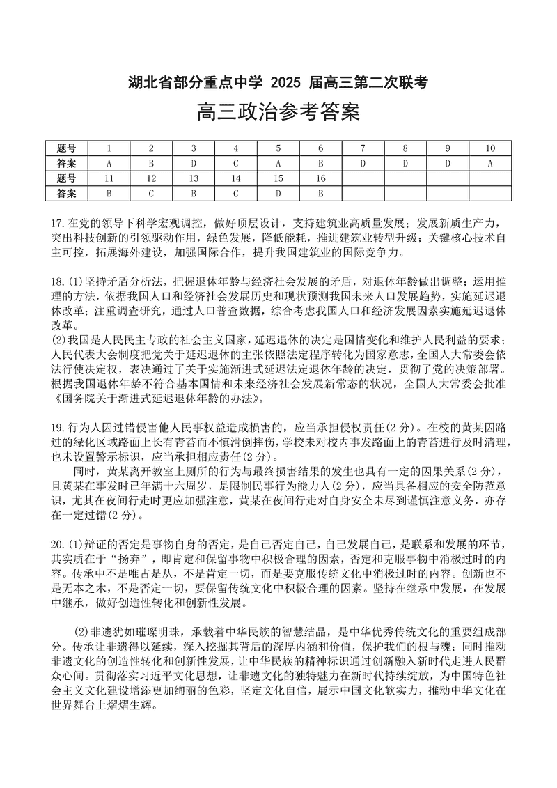 湖北省部分重点中学2025届高三第二次联考政治试题质量较高,题型多样,将作为考察考生对相应考点的掌握程度,考后将及时整理试题及答案解析相关信息,以供考生学习交流!