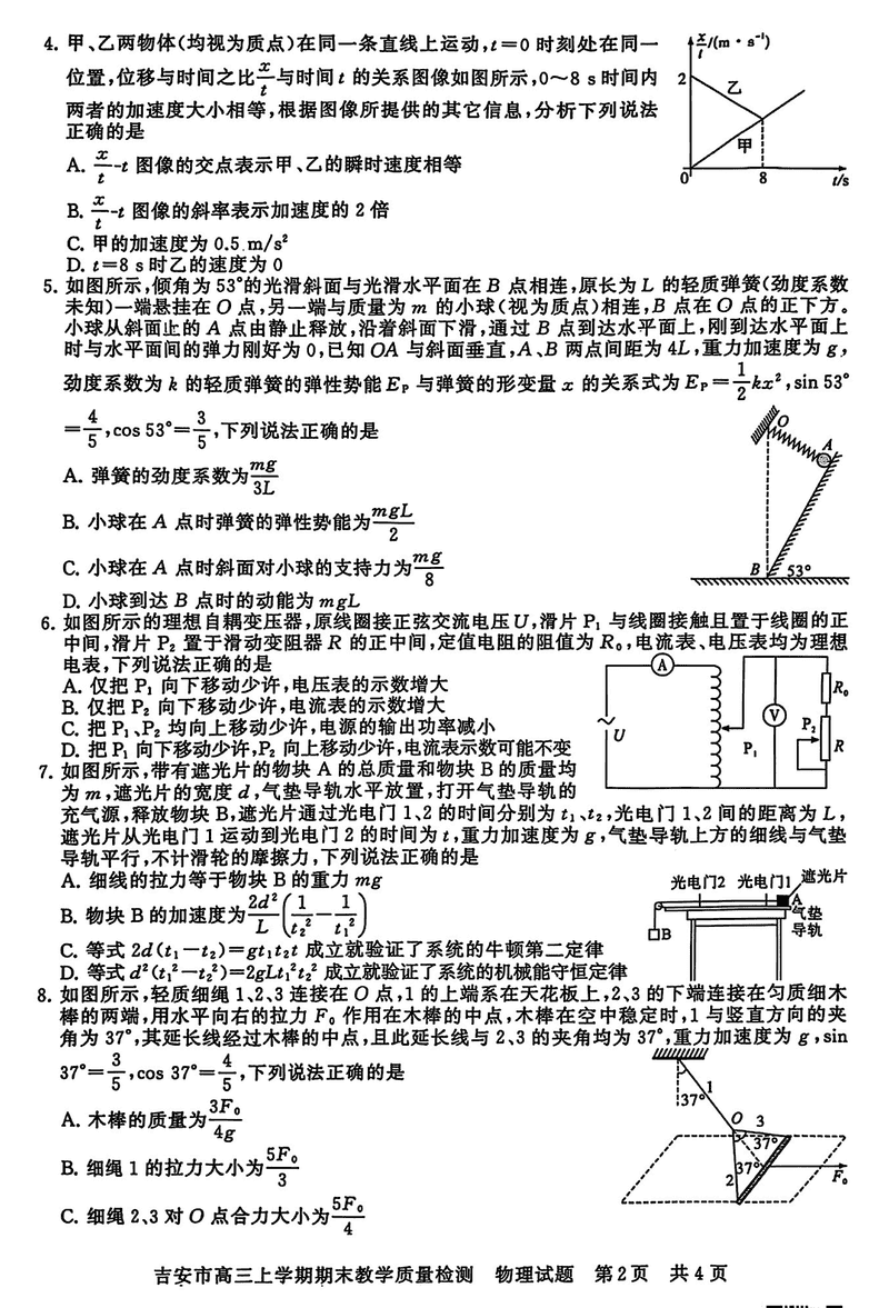 导读江西吉安2025届高三上1月期末教学质检物理试题质量较高,题型多样,将作为考察考生对相应考点的掌握程度,考后将及时整理试题及答案解析相关信息,以供考生学习交流!物理试题及答案解析