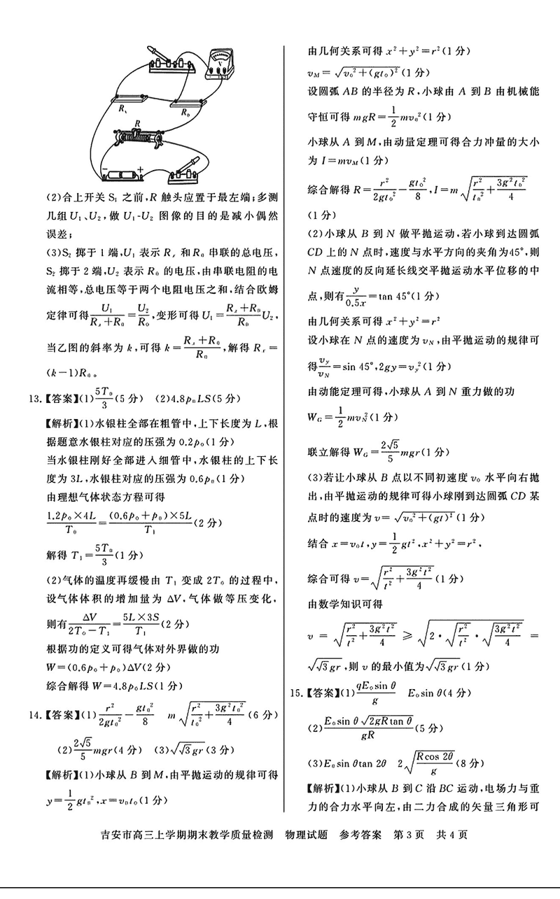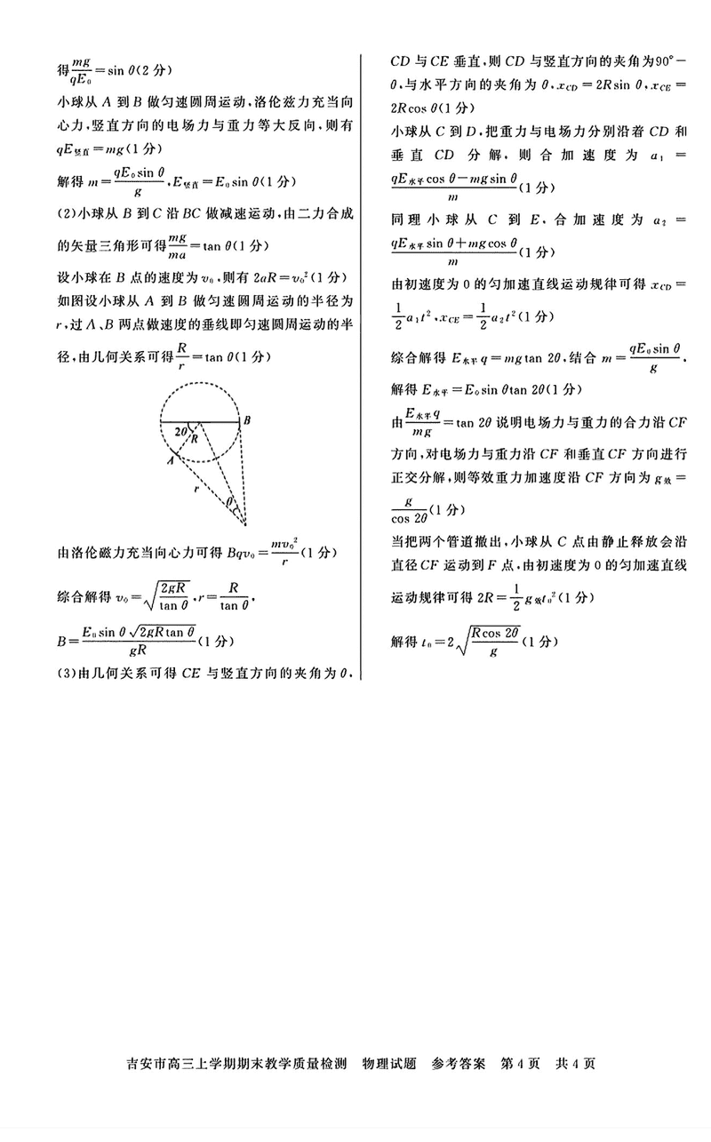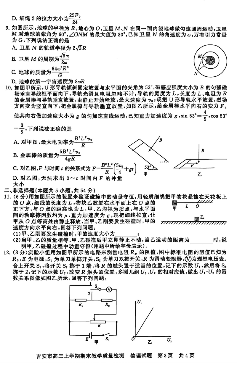 江西吉安2025届高三上1月期末教学质检物理试题质量较高,题型多样,将作为考察考生对相应考点的掌握程度,考后将及时整理试题及答案解析相关信息,以供考生学习交流!