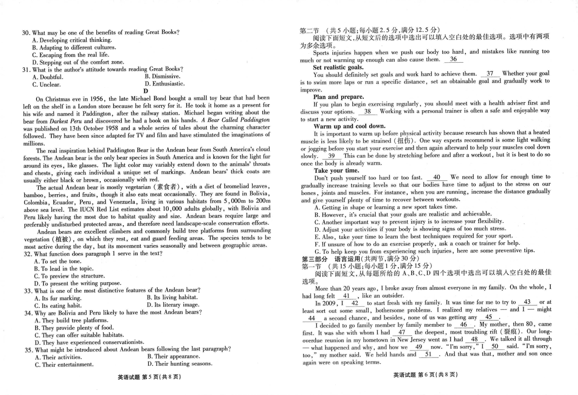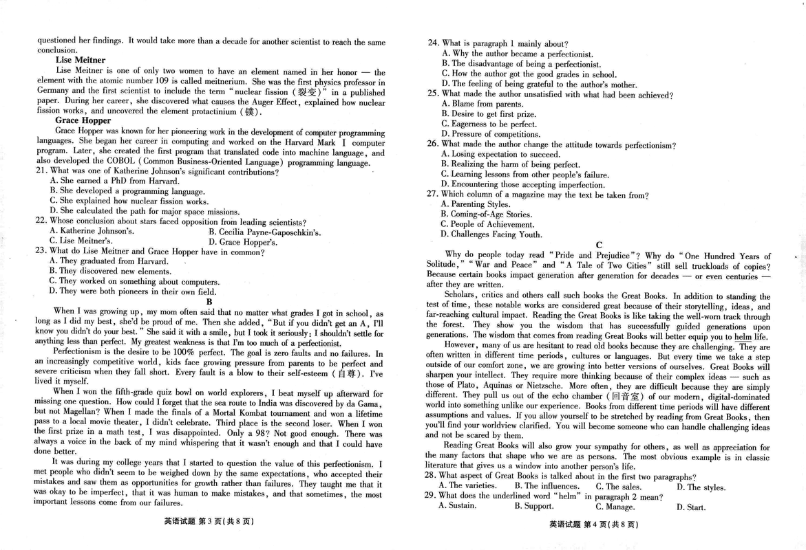 山东名校考试联盟2025年高三4月模考英语试题质量较高,题型多样,将作为考察考生对相应考点的掌握程度,考后将及时整理试题...