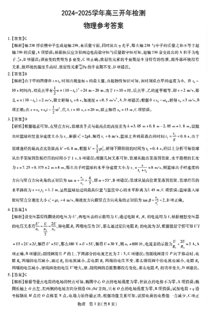 山东省大教育联盟2024-2025学年高三下学期开学检测物理试题质量较高,题型多样,将作为考察考生对相应考点的掌握程度,考后将及时整理试题及答案解析相关信息,以供考生学习交流!