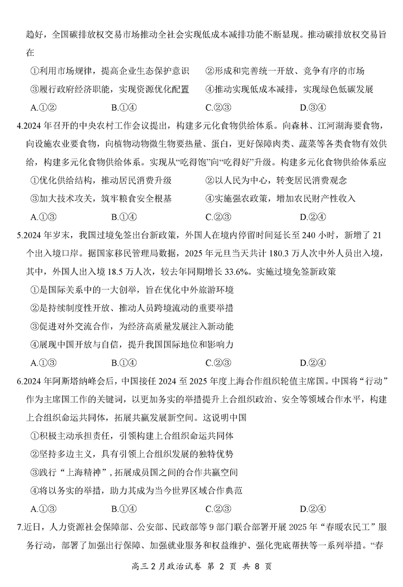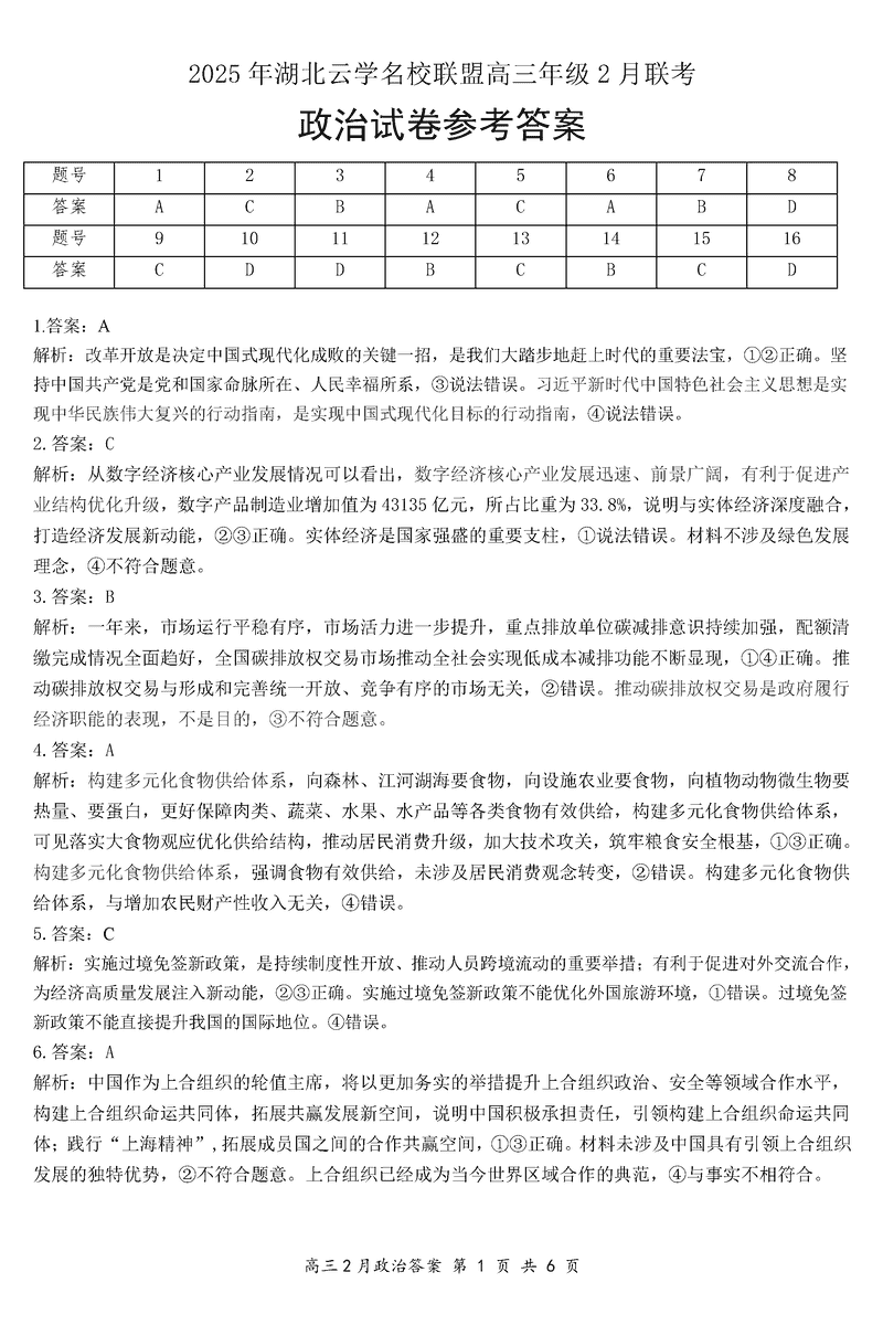 导读湖北省云学名校联盟2025届高三2月联考政治试题质量较高,题型多样,将作为考察考生对相应考点的掌握程度,考后将及时整理试题及答案解析相关信息,以供考生学习交流!政治试题及答案解析