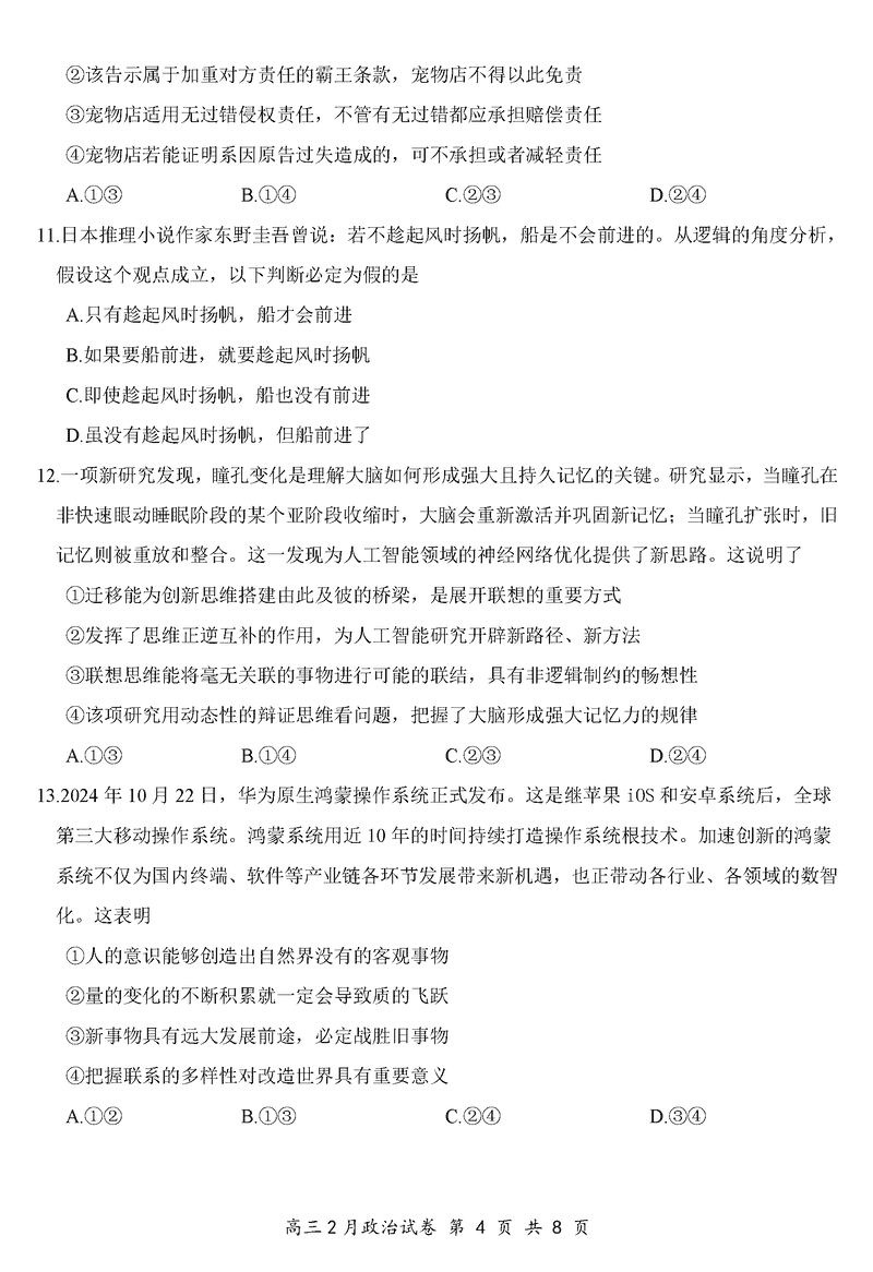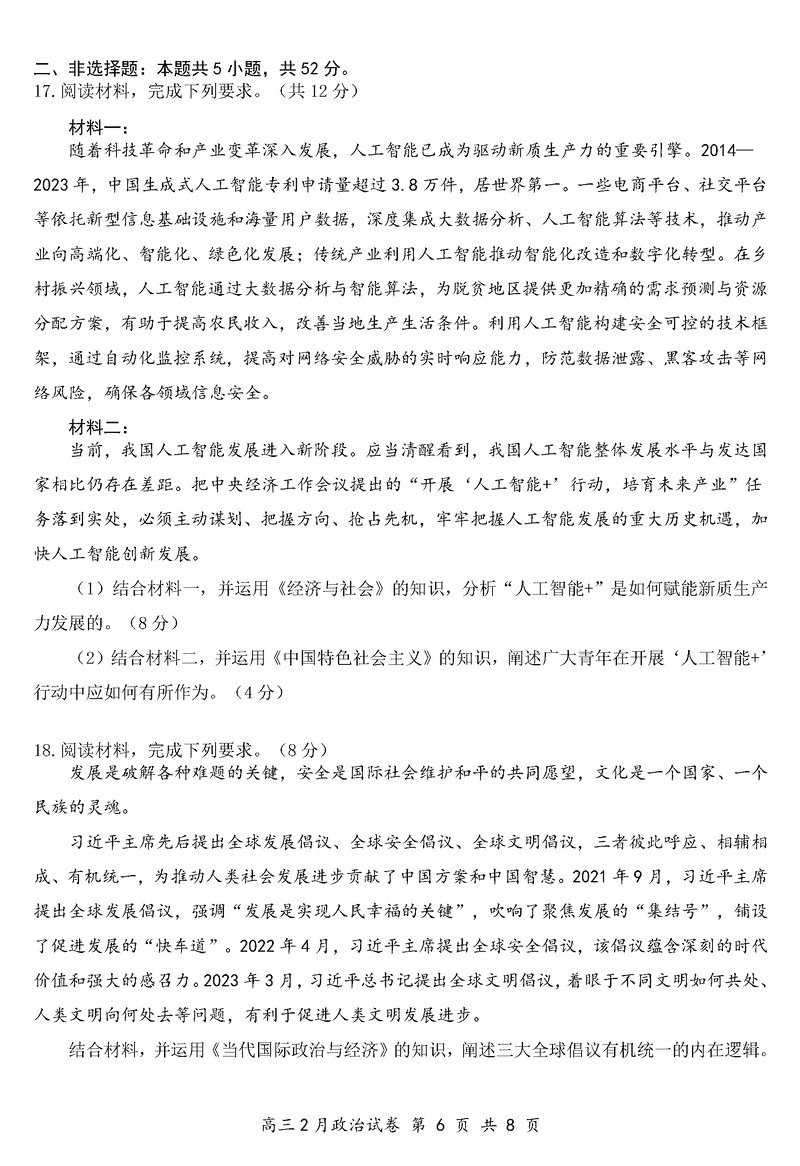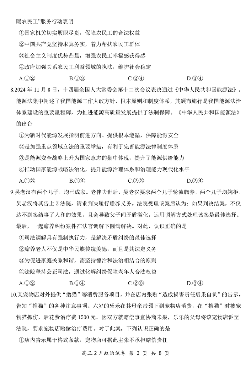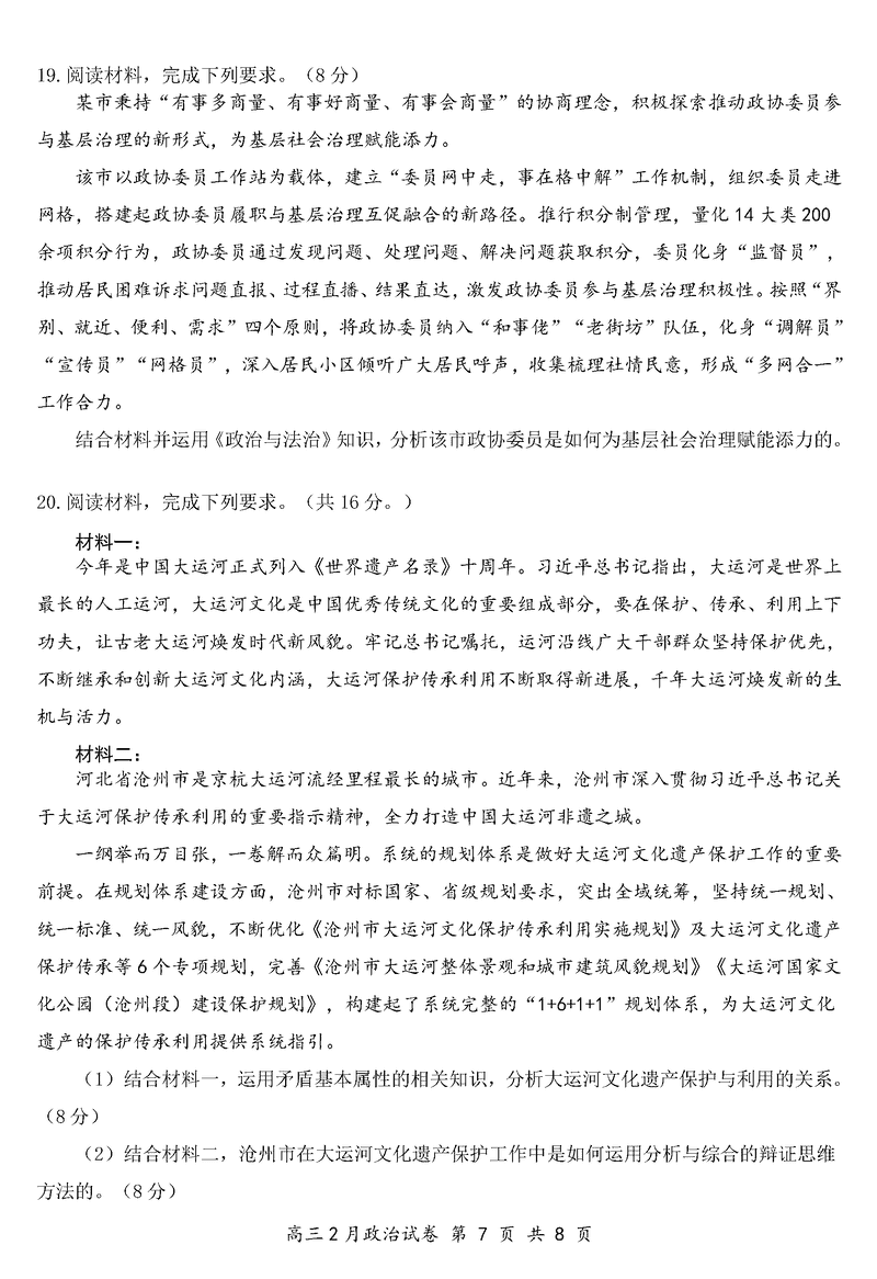 湖北省云学名校联盟2025届高三2月联考政治试题质量较高,题型多样,将作为考察考生对相应考点的掌握程度,考后将及时整理试题及答案解析相关信息,以供考生学习交流!