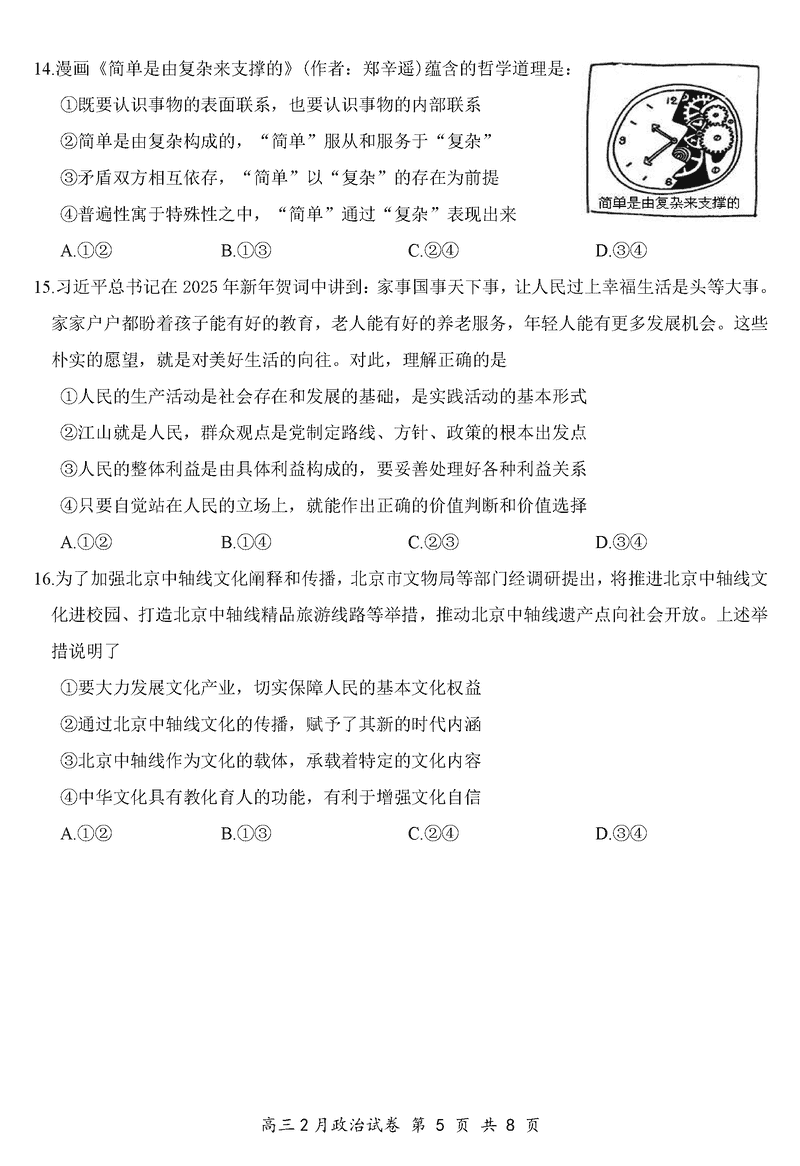 2025年湖北省新八校协作体高三5月联考政治试卷及参考答案