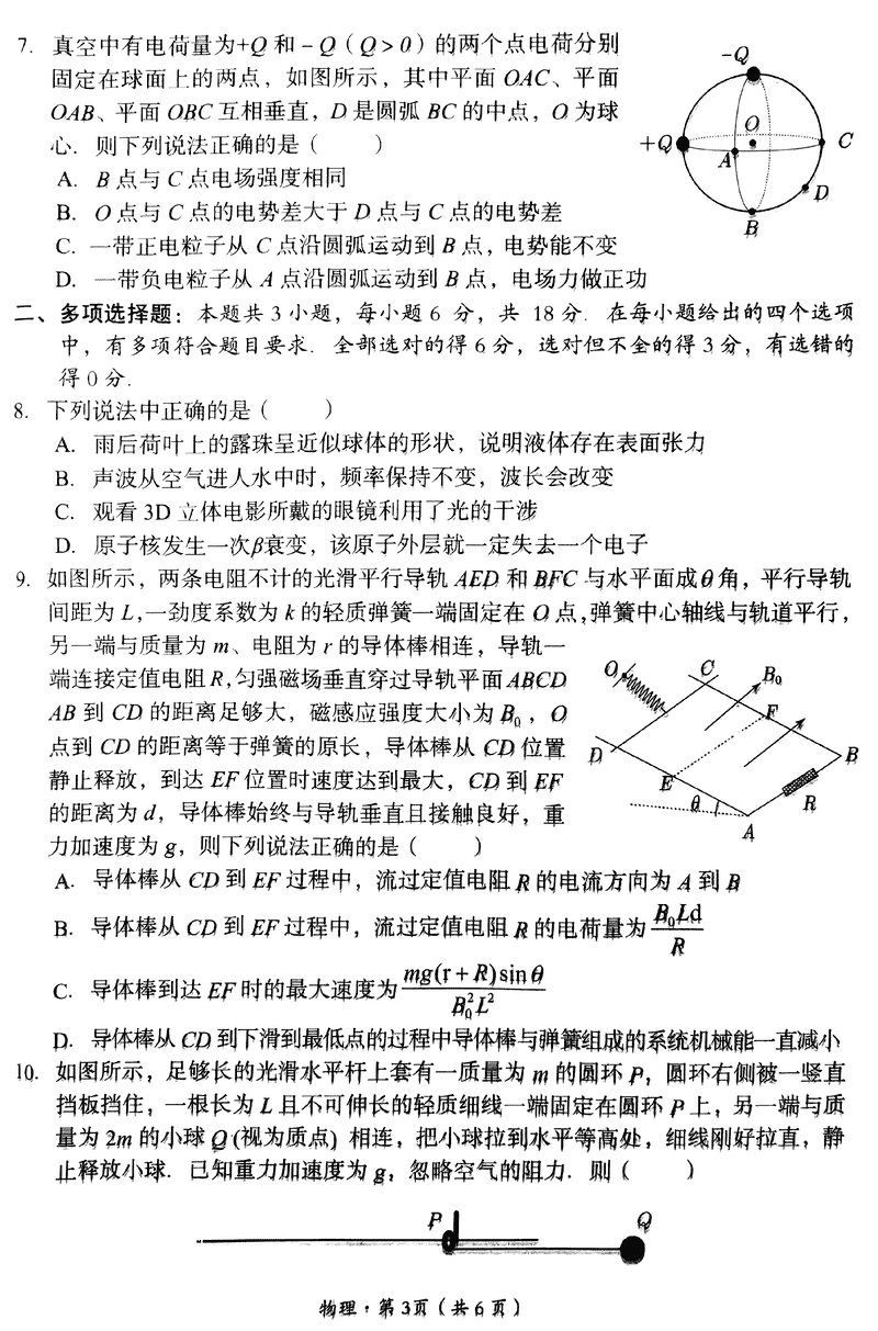 巴中一诊2025年高三第一次诊断性考物理试题质量较高,题型多样,将作为考察考生对相应考点的掌握程度,考后将及时整理试题及答案解析相关信息,以供考生学习交流!
