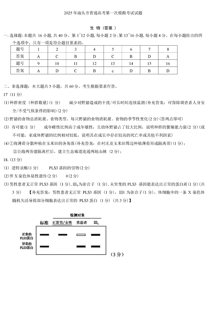 汕头一模2025届高三下学期第一次模拟考生物试题质量较高,题型多样,将作为考察考生对相应考点的掌握程度,考后将及时整理试题及答案解析相关信息,以供考生学习交流!