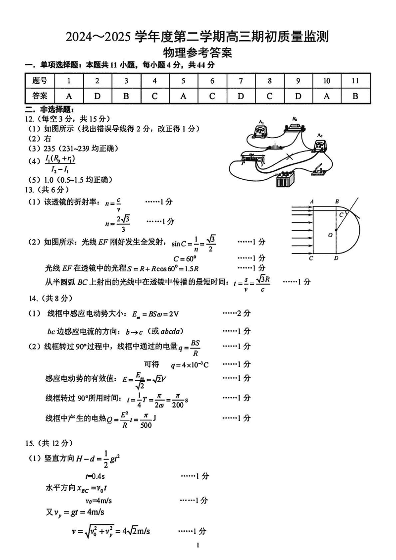 江苏镇江2024-2025学年高三下学期期初质量监测物理试题质量较高,题型多样,将作为考察考生对相应考点的掌握程度,考后将及时整理试题及答案解析相关信息,以供考生学习交流!