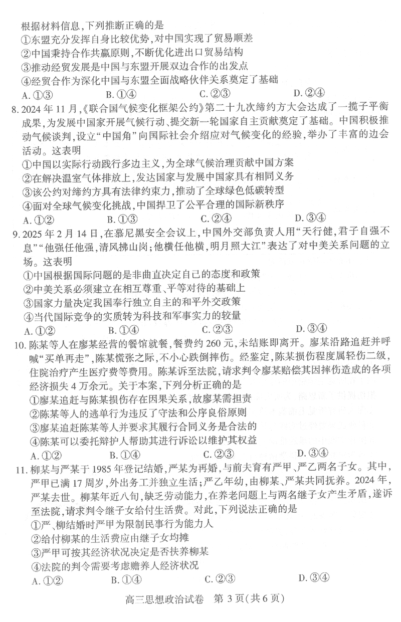 武汉市2025届高中毕业生二月调研政治试题质量较高,题型多样,将作为考察考生对相应考点的掌握程度,考后将及时整理试题及答案解析相关信息,以供考生学习交流!