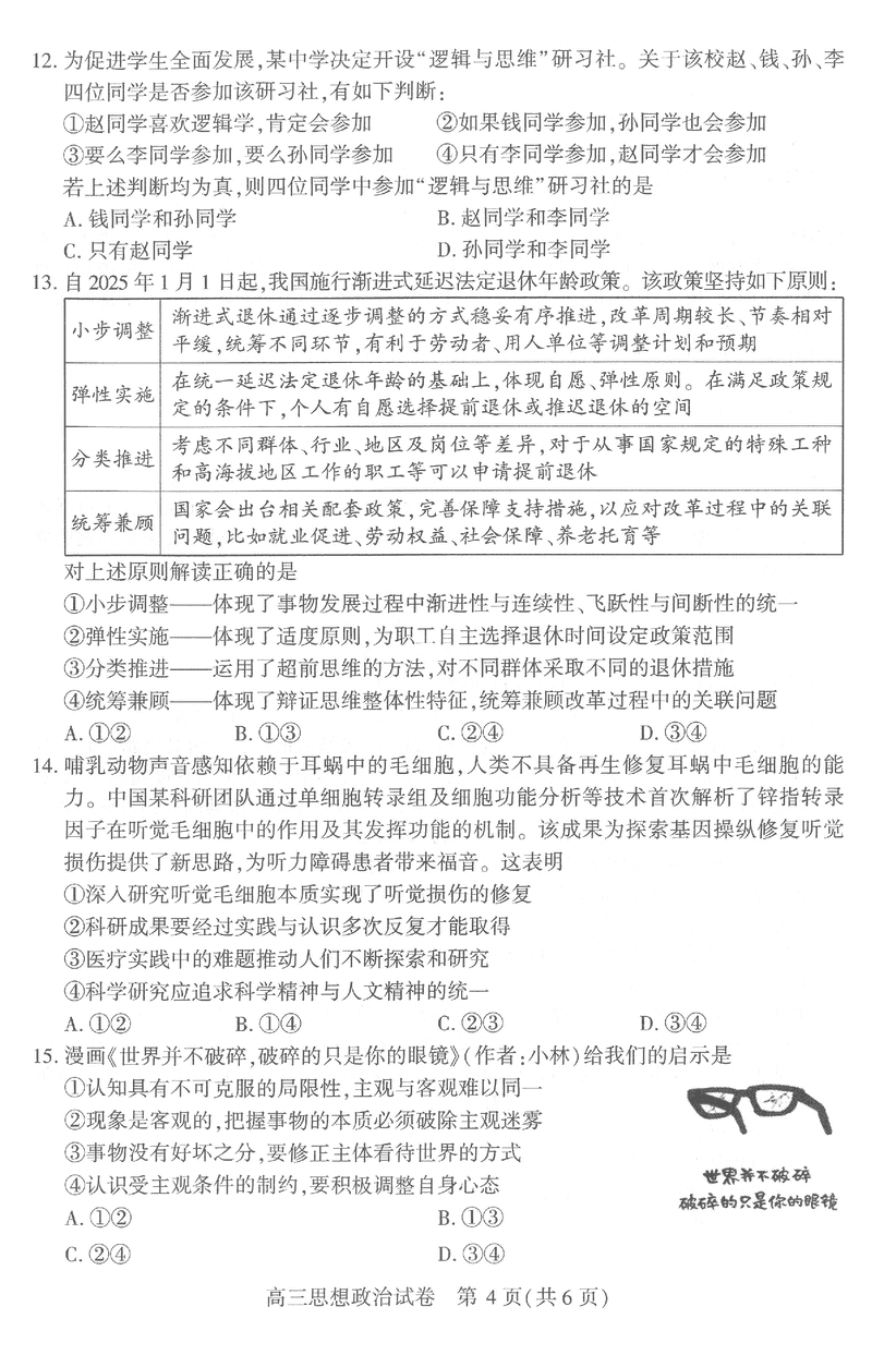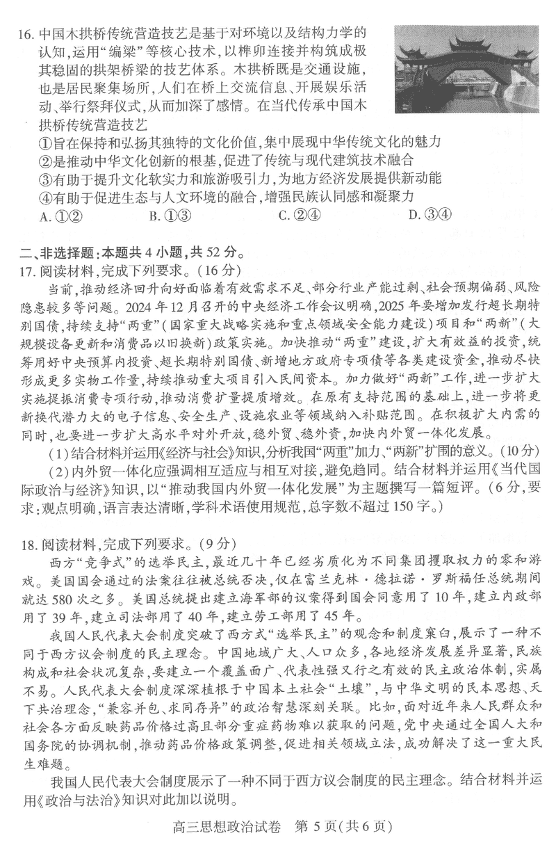 导读武汉市2025届高中毕业生二月调研政治试题质量较高,题型多样,将作为考察考生对相应考点的掌握程度,考后将及时整理试题及答案解析相关信息,以供考生学习交流!政治试题及答案解析