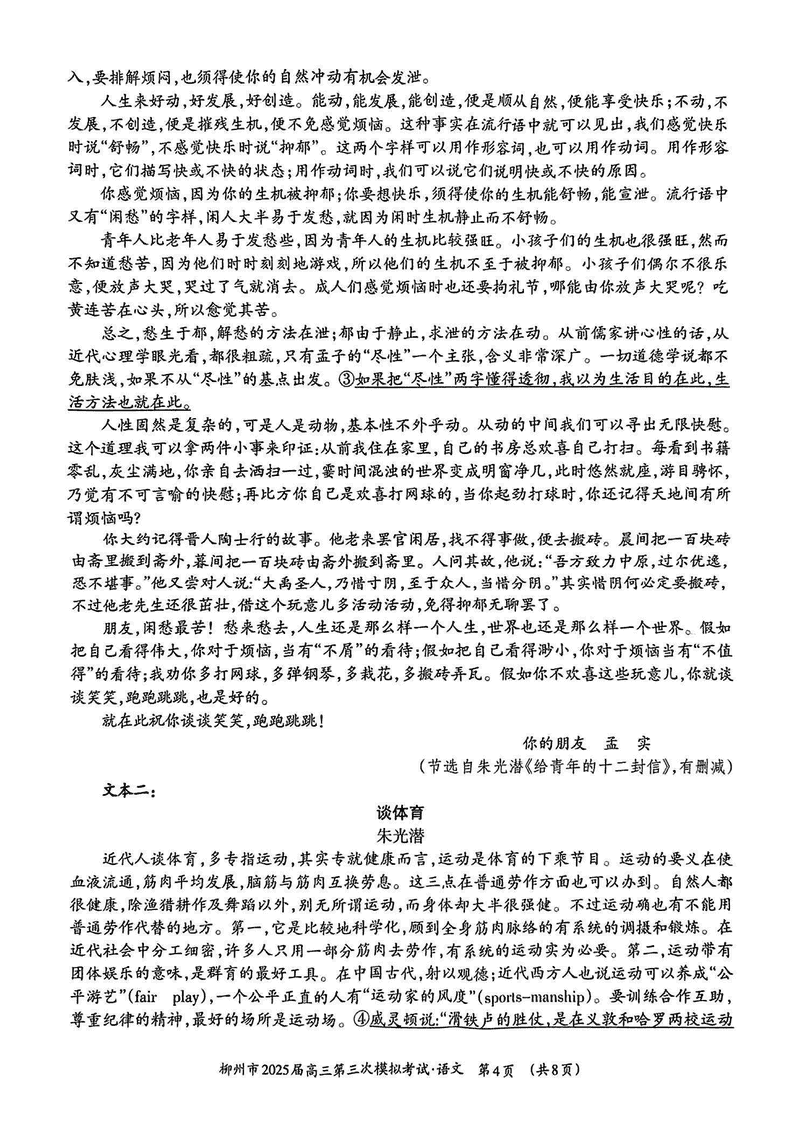 导读柳州三模2025届高三第三次模考语文试题质量较高,题型多样,将作为考察考生对相应考点的掌握程度,考后将及时整理试题及答案解析相关信息,以供考生学习交流!语文试题及答案解析