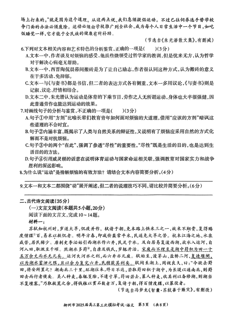 柳州三模2025届高三第三次模考语文试题质量较高,题型多样,将作为考察考生对相应考点的掌握程度,考后将及时整理试题及答案解析相关信息,以供考生学习交流!