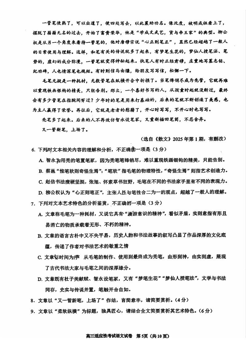 贵州2025年4月高三年级适应性语文试题质量较高,题型多样,将作为考察考生对相应考点的掌握程度,考后将及时整理试题及答案解析相关信息,以供考生学习交流!