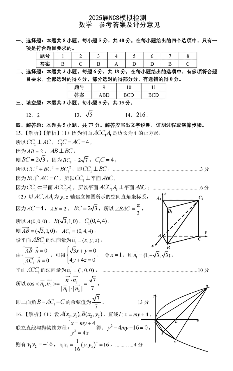 南昌二模2025届NCS模拟检测数学试题质量较高,题型多样,将作为考察考生对相应考点的掌握程度,考后将及时整理试题及答案解析相关信息,以供考生学习交流!