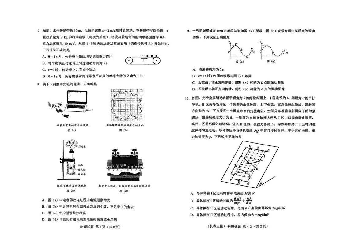 吉林长春2025届高三下学期质量监测(三)物理试题质量较高,题型多样,将作为考察考生对相应考点的掌握程度,考后将及时整理试题及答案解析相关信息,以供考生学习交流!