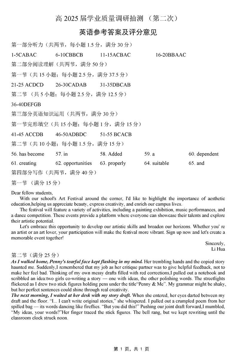 重庆主城五区二诊2025届学业质量调研抽测(第二次)英语试题质量较高,题型多样,将作为考察考生对相应考点的掌握程度,考后...