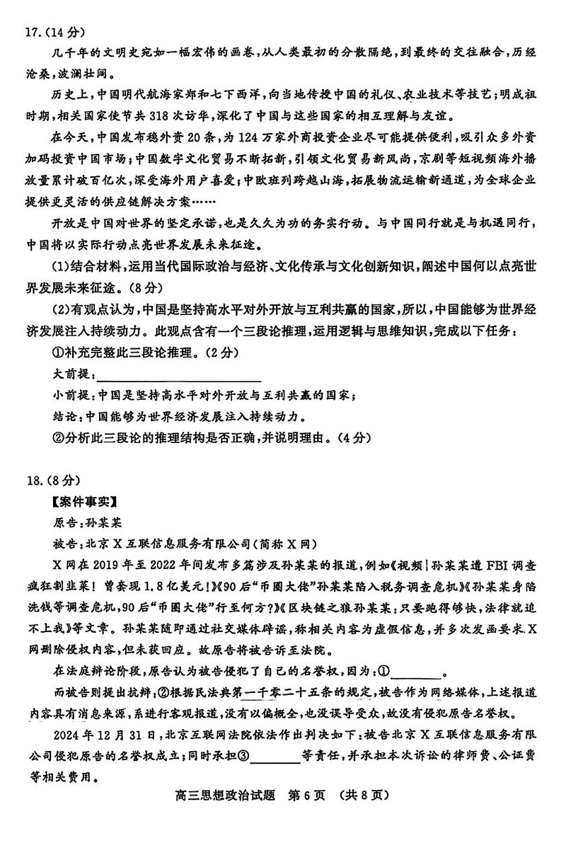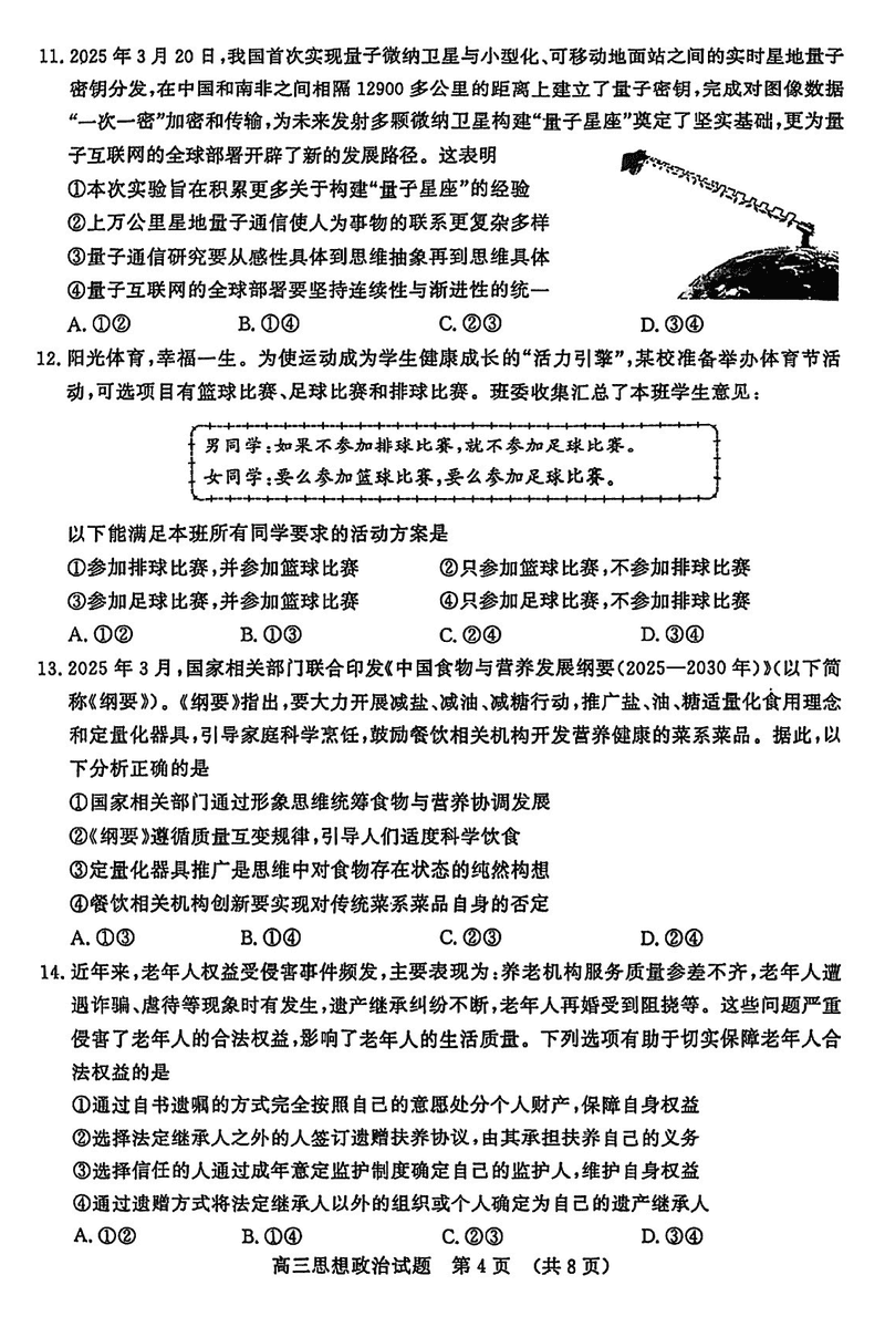 导读山东名校考试联盟2025年高三4月模考政治试题质量较高,题型多样,将作为考察考生对相应考点的掌握程度,考后将及时整理试题及答案解析相关信息,以供考生学习交流!政治试题及答案解析