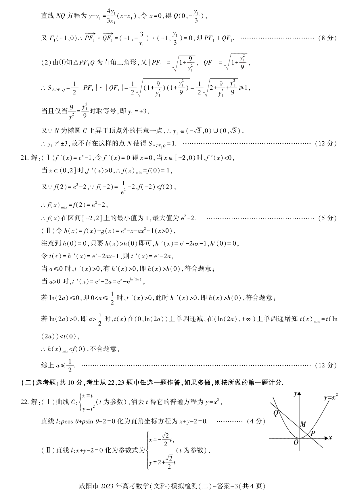 2023届陕西省咸阳市高三二模文数答案