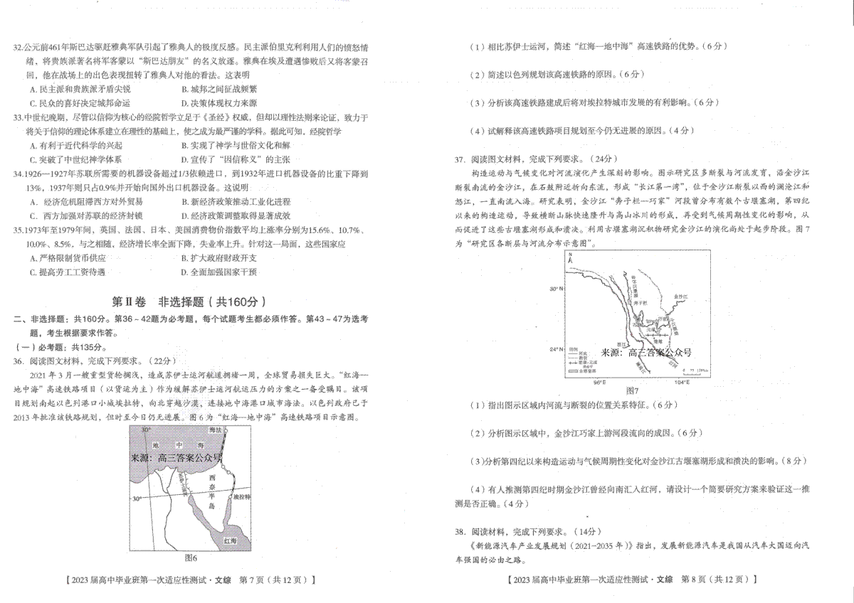 以上内容为南宁市2023 届高中毕业班第一次适应性测试文综详情,请关注大试题网为广大考生提供的其它相关内容。