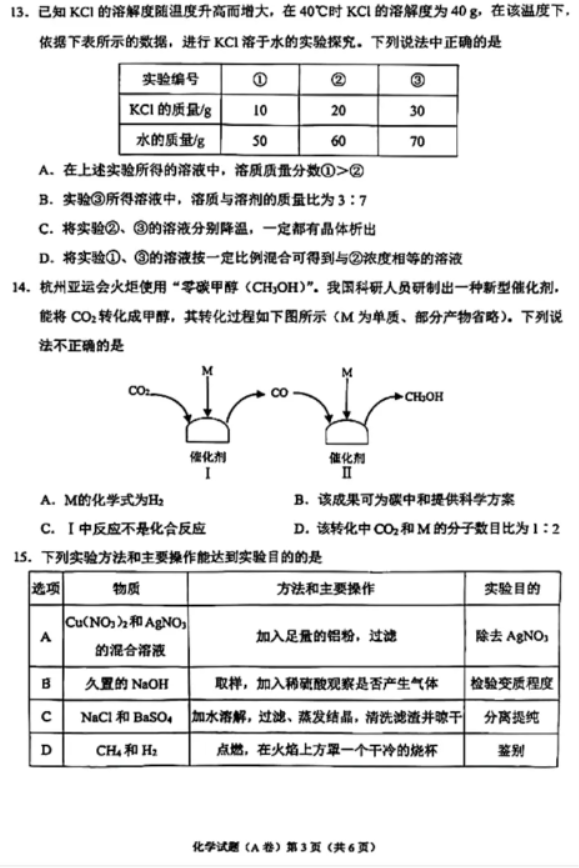 导读大试题为您提供2024年重庆中考化学A卷真题