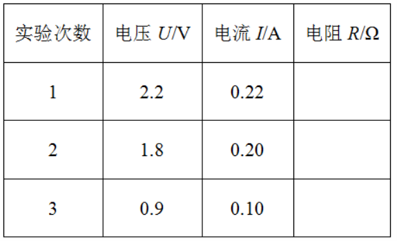 (3)排除故障后闭合开关,移动滑片测出几组数据,记录在表中。根据表中数据,求得定值电阻的阻值是_______Ω(结果保留一位小数);