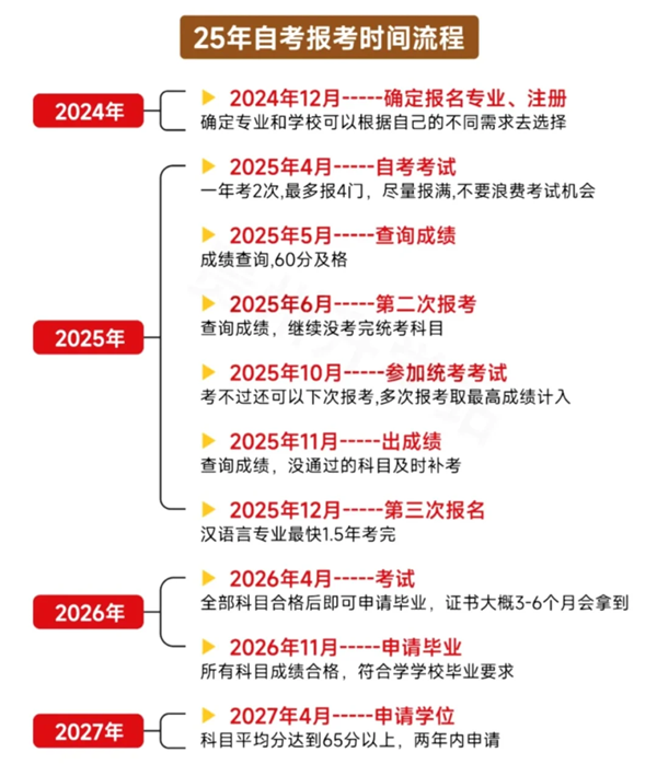 自考备考时间流程图