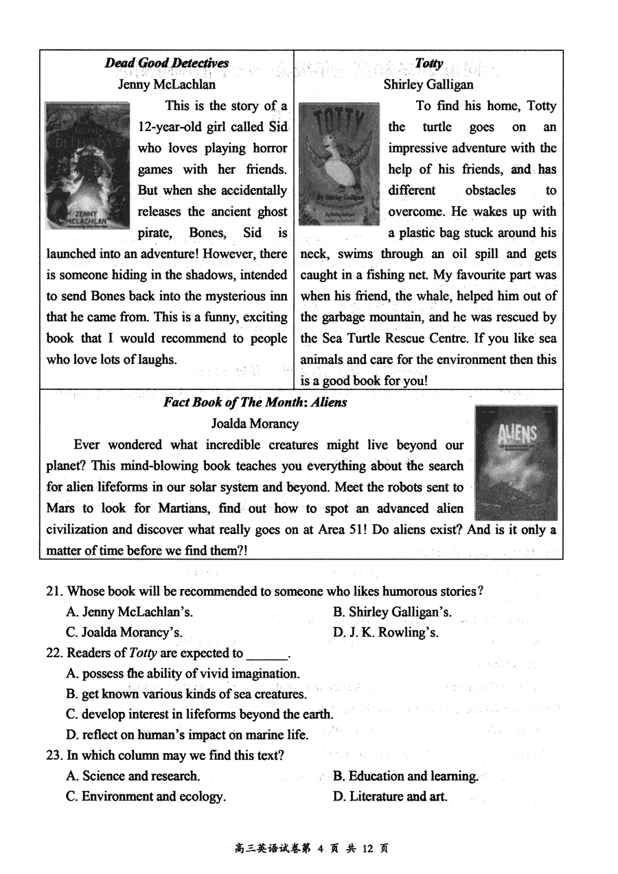 山西大同2025届高三第一次学情调研英语试题质量较高,题型多样,将作为考察考生对相应考点的掌握程度,考后将及时整理试题及答案解析相关信息,以供考生学习交流!
