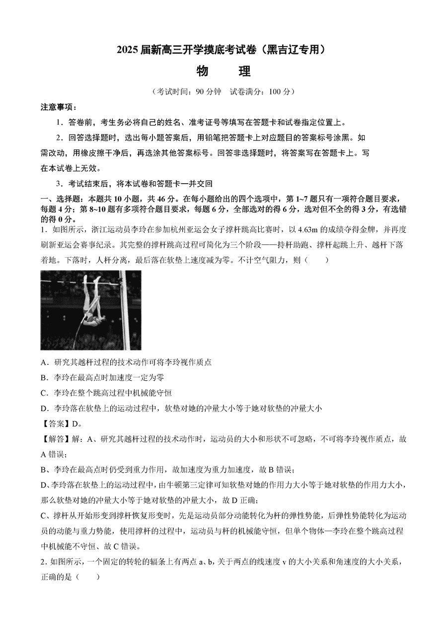 黑吉辽2025届大试题网开学摸底考物理试题质量较高,题型多样,将作为考察考生对相应考点的掌握程度,考后将及时整理试题及答案解析相关信息,以供考生学习交流!