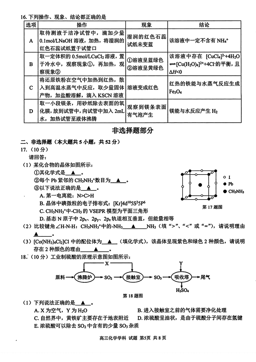 导读浙江七彩阳光联盟2025届高三返校联考化学试题质量较高,题型多样,将作为考察考生对相应考点的掌握程度,考后将及时整理试题及答案解析相关信息,以供考生学习交流!化学试题及答案解析