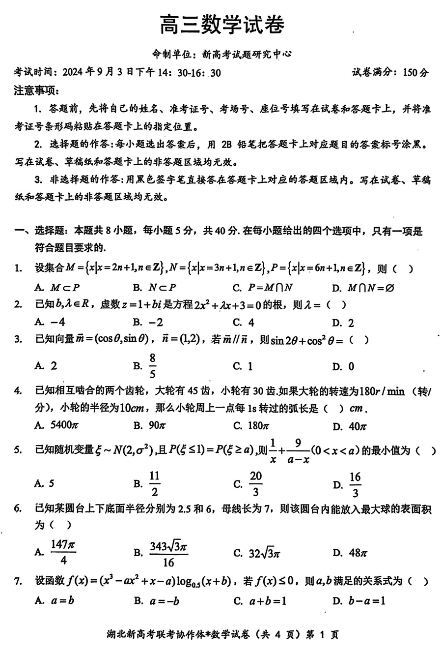 2025年湖北省新八校协作体高三5月联考数学试题质量较高,题型多样,将作为考察考生对相应考点的掌握程度,考后将及时整理试...