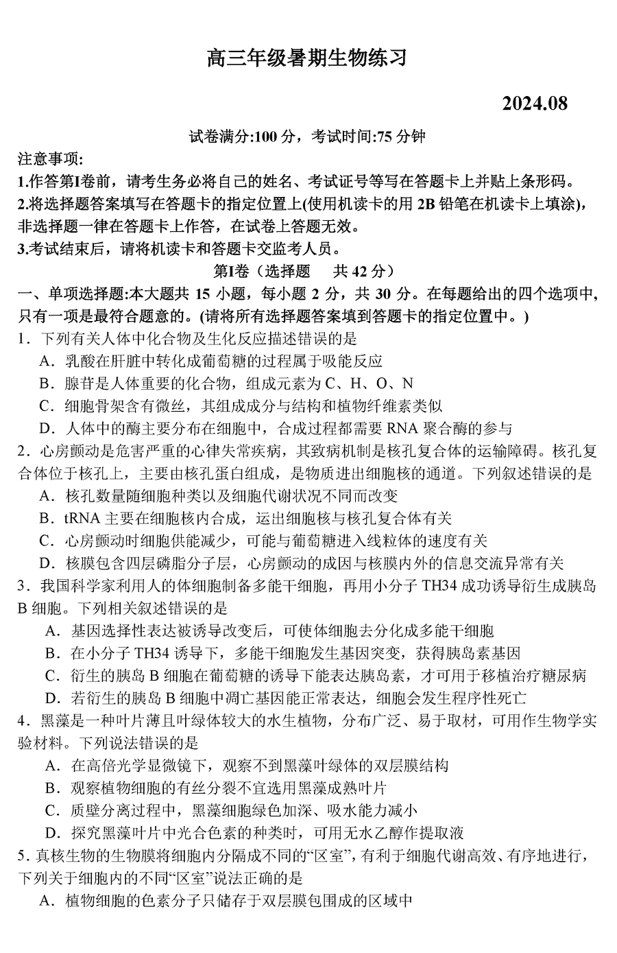 江苏省扬州市2024-2025学年高三上学期开学考物理试题质量较高,题型多样,将作为考察考生对相应考点的掌握程度,考后将及时整理试题及答案解析相关信息,以供考生学习交流!