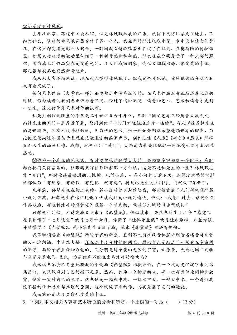 兰州一中2024-2025学年高三上学期开学考语文试题质量较高,题型多样,将作为考察考生对相应考点的掌握程度,考后将及时整理试题及答案解析相关信息,以供考生学习交流!