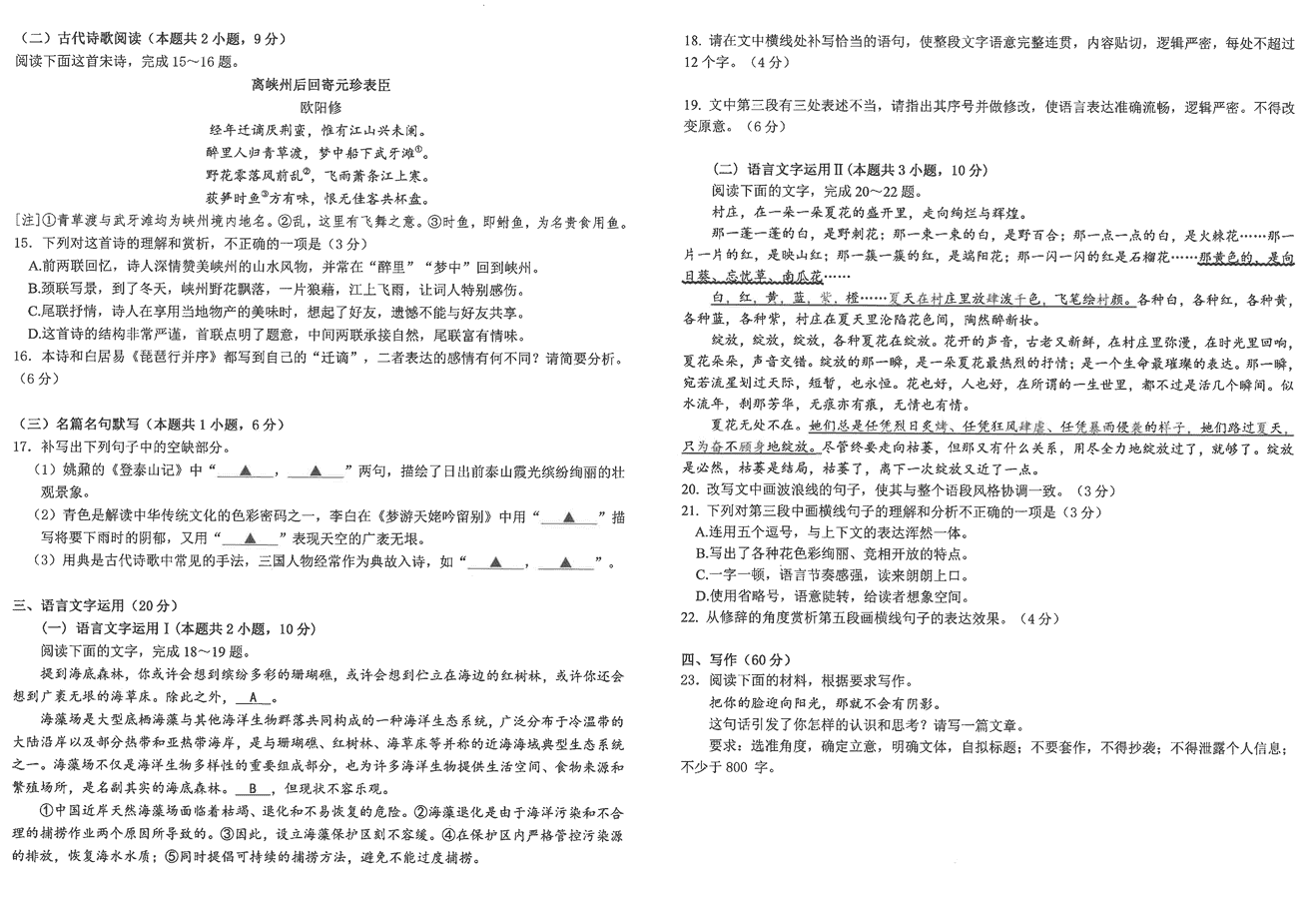 江苏苏北八市2025届高三三模(南通、泰州、扬州、徐州、连云港、淮安、宿迁、盐城)语文试题质量较高,题型多样,将作为考察...