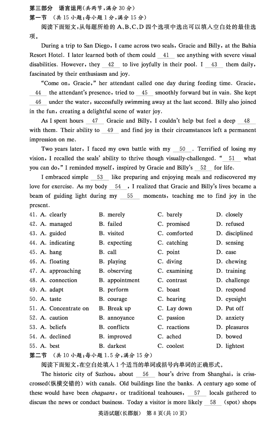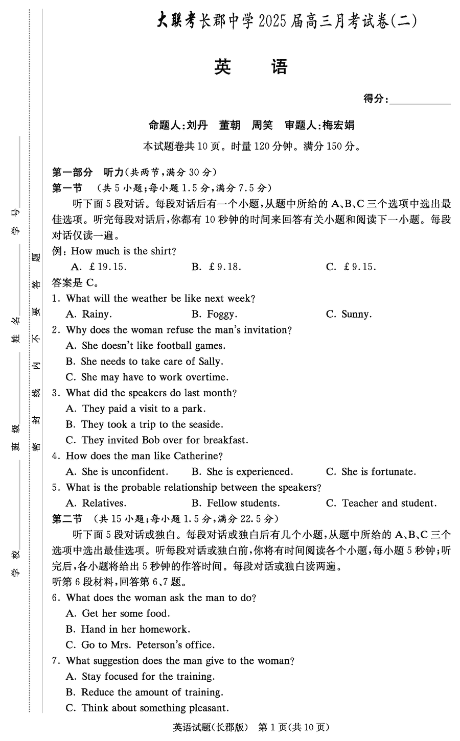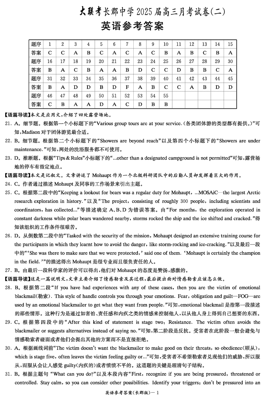 导读湖南长郡中学 2025 届高三月考试卷(二)英语试题质量较高,题型多样,将作为考察考生对相应考点的掌握程度,考后将及时整理试题及答案解析相关信息,以供考生学习交流!英语试题及答案解析