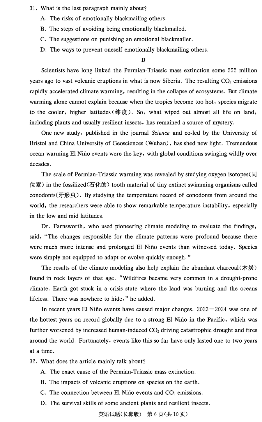 湖南长郡中学 2025 届高三月考试卷(二)英语试题质量较高,题型多样,将作为考察考生对相应考点的掌握程度,考后将及时整理试题及答案解析相关信息,以供考生学习交流!