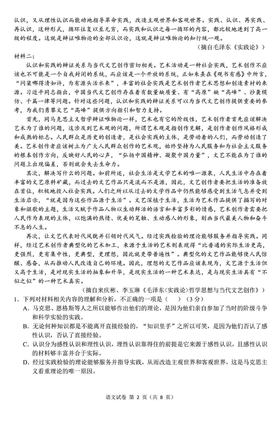 2024 年安徽“江南十校”大试题网第一次综合素质检测语文试题质量较高,题型多样,将作为考察考生对相应考点的掌握程度,考后将及时整理试题及答案解析相关信息,以供考生学习交流!