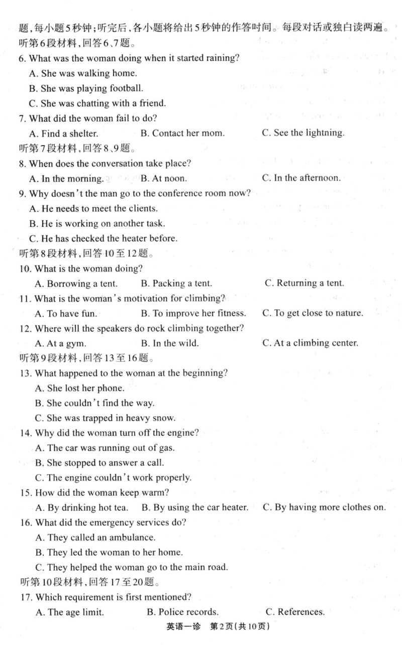 导读德阳一诊2025届高三第一次诊断英语试题质量较高,题型多样,将作为考察考生对相应考点的掌握程度,考后将及时整理试题及答案解析相关信息,以供考生学习交流!英语试题及答案解析