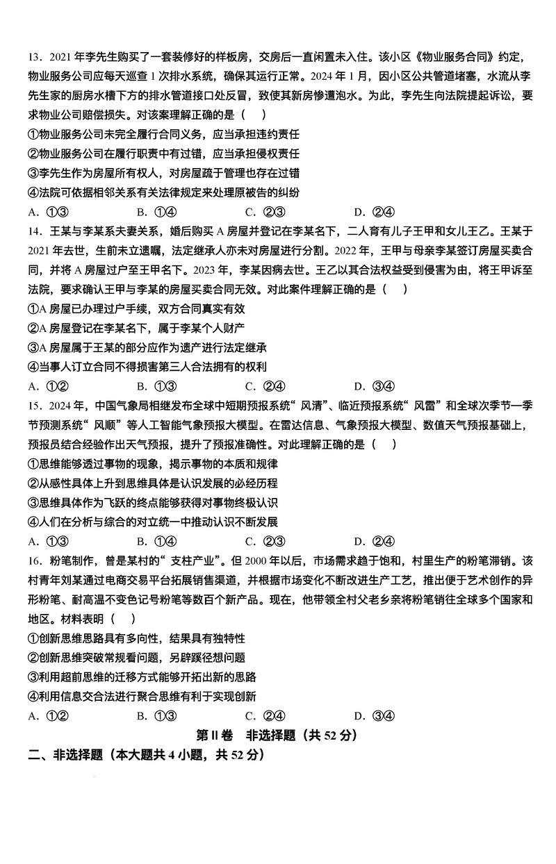 2025年湖北省新八校协作体高三5月联考政治试卷及参考答案