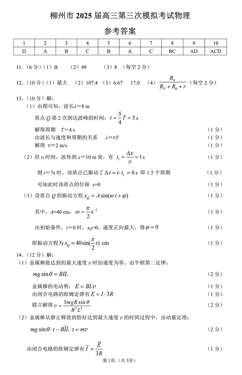 柳州三模2025届高三第三次模考物理试题质量较高,题型多样,将作为考察考生对相应考点的掌握程度,考后将及时整理试题及答案解析相关信息,以供考生学习交流!