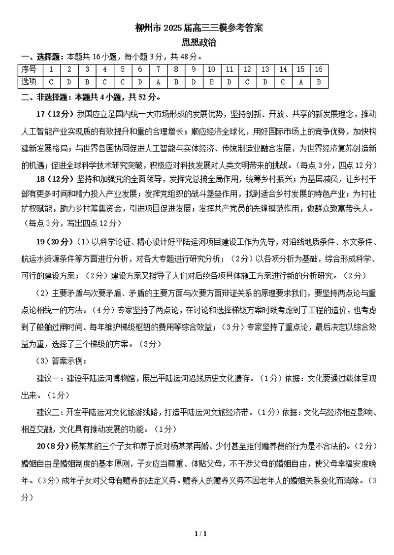 导读柳州三模2025届高三第三次模考政治试题质量较高,题型多样,将作为考察考生对相应考点的掌握程度,考后将及时整理试题及答案解析相关信息,以供考生学习交流!政治试题及答案解析