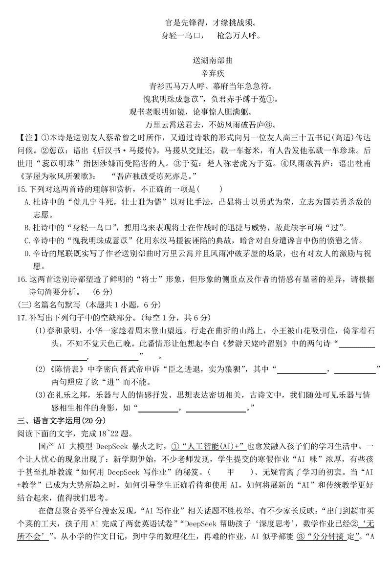 导读宜春二模2025届高三下学期4月模考语文试题质量较高,题型多样,将作为考察考生对相应考点的掌握程度,考后将及时整理试题及答案解析相关信息,以供考生学习交流!语文试题及答案解析