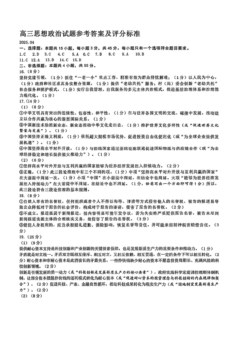 导读山东名校考试联盟2025年高三4月模考政治试题质量较高,题型多样,将作为考察考生对相应考点的掌握程度,考后将及时整理试题及答案解析相关信息,以供考生学习交流!政治试题及答案解析