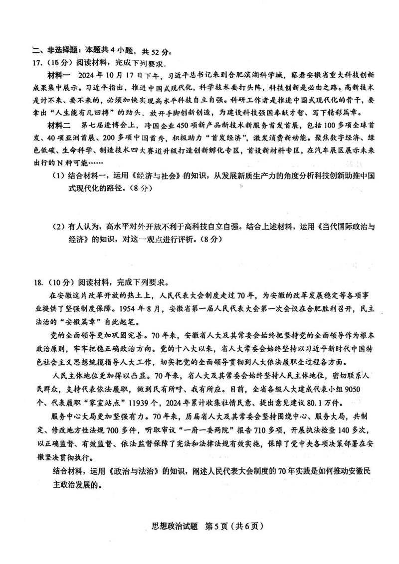 合肥三模2025届高三5月教学质量检测政治试题质量较高,题型多样,将作为考察考生对相应考点的掌握程度,考后将及时整理试题及答案解析相关信息,以供考生学习交流!