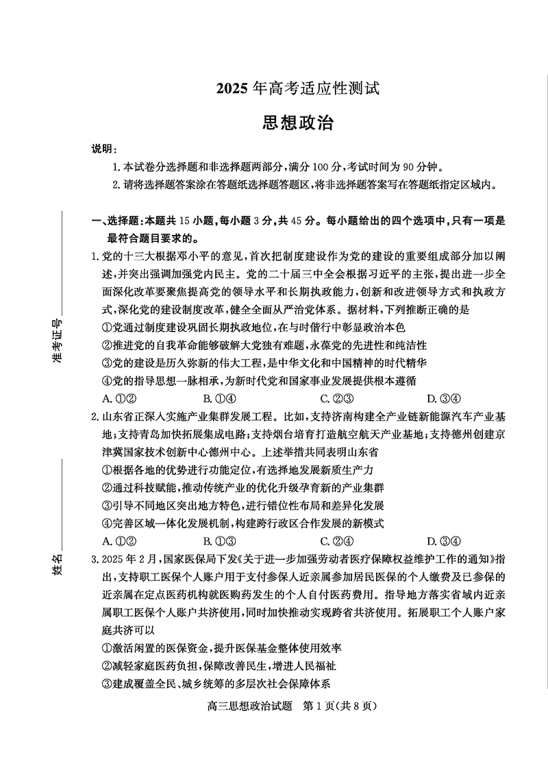 烟台、德州二模2025届高三高考适应性测试政治试题质量较高,题型多样,将作为考察考生对相应考点的掌握程度,考后将及时整理试题及答案解析相关信息,以供考生学习交流!