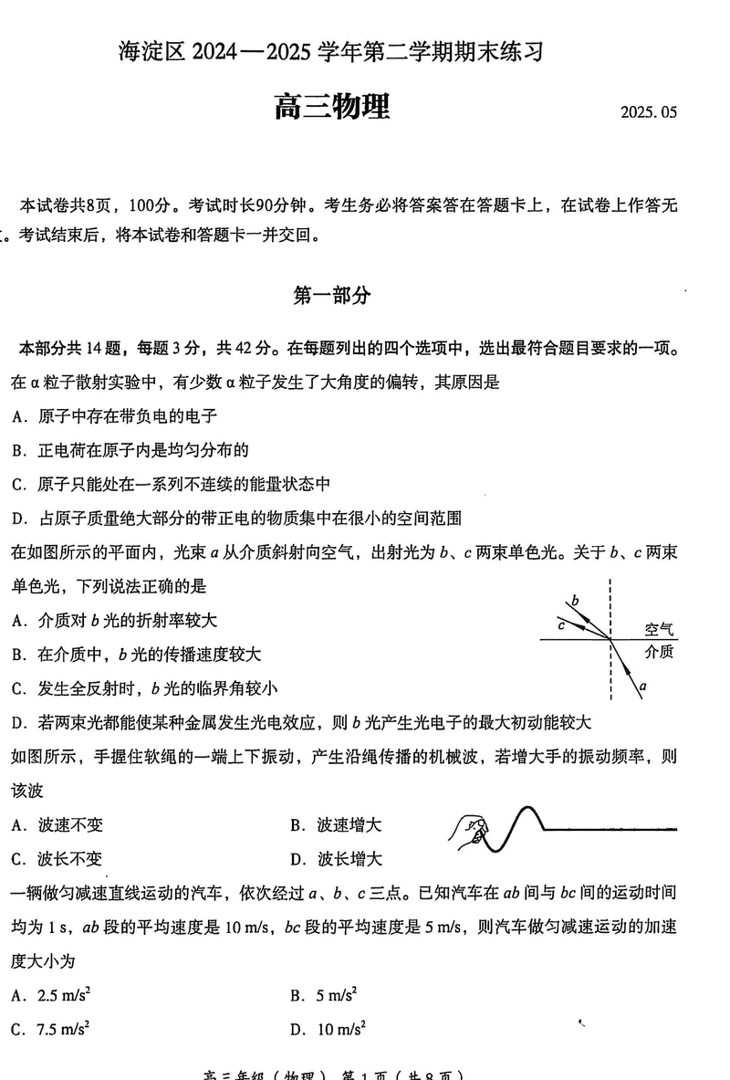 2025年北京市海淀区高三二模物理试题质量较高,题型多样,将作为考察考生对相应考点的掌握程度,考后将及时整理试题及答案解...