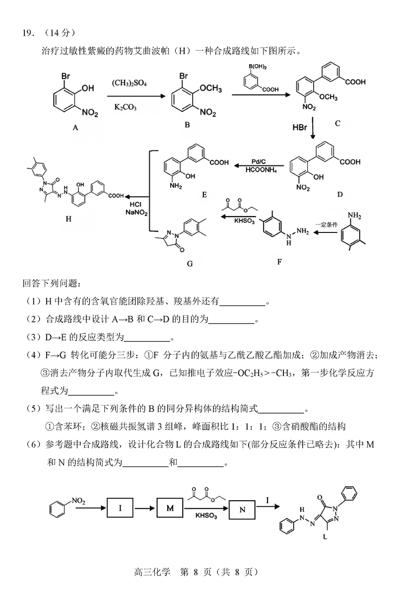 沈阳市2025届高三下教学质量监测(三)化学试题质量较高,题型多样,将作为考察考生对相应考点的掌握程度,考后将及时整理试题及答案解析相关信息,以供考生学习交流!
